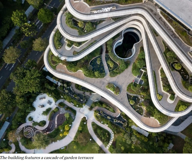 (Source: dezeen.com/2023/08/23/eric-parry-wilmar-hq-garden-terraces-singapore/)