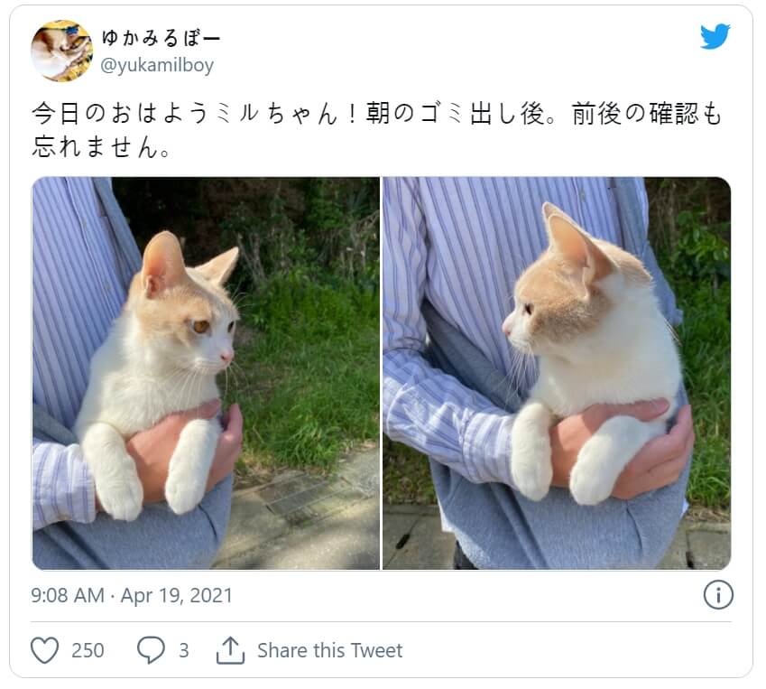 Check out pictures of Miru-chan on his daily strolls below and find more cute content on Twitter.